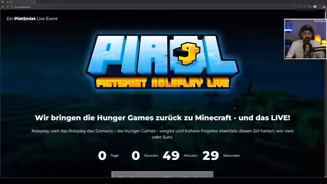 Edopeh nimmt am Minecraft Pirol Event teil, einem von PietSmiet veranstalteten Hardcore Battle Royale. Gemeinsam mit @kaaaay bildet er Team Bleifrei. Strategien werden geschmiedet, Ressourcen gesammelt und die schrumpfende Zone im Auge behalten. Ein früher Tod bedeutet das sofortige Ausscheiden aus dem Event.