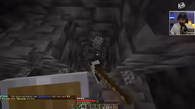01:52:58Bei der Suche nach Eisen stößt man auf eine riesige Höhle und äußert die Befürchtung, von anderen Spielern gesehen zu werden. Es wird beschlossen, dass der Teampartner zur Unterstützung kommen soll. Währenddessen wird das gefundene Eisen eingeschmolzen. Die Spieler bemerken das Geräusch von Wasser und vermuten, dass sich jemand im Wasser befindet, stellen aber fest, dass man im Infobereich nicht schleichen kann. Einer der Spieler macht sich auf den Weg zum anderen, um Unterstützung zu leisten und gemeinsam nach Ressourcen zu suchen. Es wird vereinbart, dass genügend Platz zum Abbauen vorhanden ist, aber das Abbauen alleine als unangenehm empfunden wird. Die Spieler stellen fest, dass sie noch nicht sehr tief unter der Oberfläche sind und überlegen, ob es sich lohnt, weiter hinabzusteigen. Sie erkennen, dass sie viel Zeit verloren haben und Rüstung benötigen, da die anderen Spieler an der Oberfläche bereits Dörfer geplündert haben und mit Eisen ausgestattet sind. Es wird beschlossen, dass sie erst wieder an die Oberfläche gehen, wenn sie eine Eisenrüstung haben.