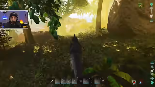 03:29:13Nachdem der Streamer seinen ersten gezähmten Dino namens 'Furzarsch' erfolgreich bei sich hat, stellt er fest, dass Kevin ebenfalls einen Dino gezähmt hat. Beide treffen sich, begrüßen sich stolz auf ihre Fortschritte und gründen einen Stamm ('Tribe'). Die Diskussion über die zukünftige Strategie zeigt eine klare Trennung: Kevin plant, eine größere Basis in einem Redwood-Gebiet zu bauen, während der Streamer weiterhin die Grundlagen und weitere Dinos erkunden möchte. Das gemeinsame Ziel bleibt der Bosskampf, dessen Vorbereitung jedoch mehr Zeit und Ressourcen erfordert.