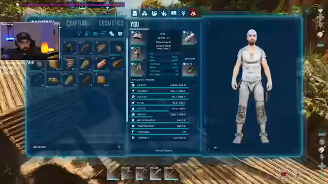 02:43:54Das Ziel, einen Dinosaurier zu zähmen, rückt in den Mittelpunkt. Nach anfänglichen Misserfolgen, die durch die falsche Verwendung von Bolas und das Missverständnis, dass der Dino sterben müsse, entstehen, wird die korrekte Methode verstanden: Ein 'Knüppel' wird benötigt, um das Tier zu betäuben. Der Streamer lernt neue Rezepte wie Narcotics aus Narco-Berries und verdorbenem Fleisch. Nach einer intensiven und anstrengenden Zähmungsaktion mit dem Knüppel gelingt es ihm endlich, einen Parasaurus zu bändigen und ihm einen Sattel anzufertigen, was als großer Erfolg gefeiert wird.
