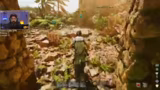 01:13:07Der Spieler sammelt Ressourcen, um Erfahrungspunkte zu sammeln und zu leveln. Mit den ersten Punkten im Skilltree werden grundlegende Fähigkeiten wie Feuer herstellen, Steinbeil und Speer erlernt. Gleichzeitig beginnt der Bau einer kleinen Basis, bestehend aus einem Fundament, Lagerfeuer und ersten Wänden. Die erste Nacht wird überdauert, indem der Spieler sich im Inneren der Basis aufhält und sein Feuer am Leben erhält.