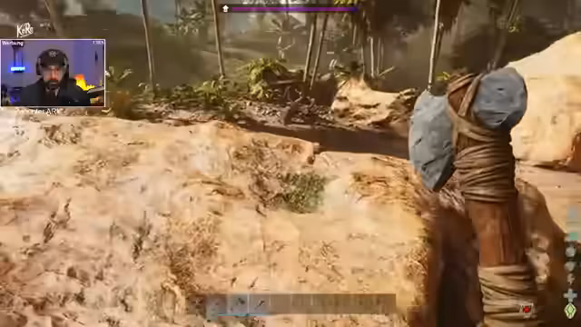 01:24:38Nach dem Aufbau einer sicheren Basis erkundet der Spieler seine kleine Insel genauer. Er interagiert mit verschiedenen neutralen Dinos, darunter Dodos und ein Brontosaurus. Ein wichtiger Moment ist die Zähmung eines Flugsauriers, dem er den Namen 'Chat' gibt und der fortan als Begleiter dient. Die Entdeckung und Zähmung dieser Kreatur wird als großer Erfolg und Highlight des Streams gefeiert.