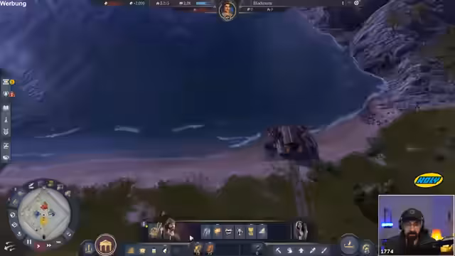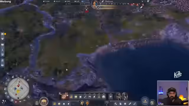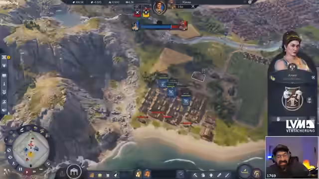02:42:39Das Team diskutiert die anfängliche Lage im Hafen mit regenden Bogenschützen und plant die Vorgehensweise gegen Radler. Es entsteht ein heftiger Streit über die tatsächliche Bevölkerungszahl, da Ranger und Hanno behaupten, 2200 Einwohner zu haben, was angezweifelt wird. Gleichzeitig wird die Siegbedingung von 10.000 Einwohnern als Ziel diskutiert und die Notwendigkeit gemeinsamer Aktionen betont, um die Übermacht der Gegner mit stärkeren Schiffen auszugleichen.