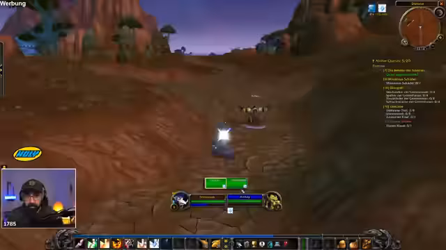 09:05:14Nach dem Sammeln der vier Skorpion-Beutel eilen die Spieler zurück zu Korgan, um die Gegengift-Quest abzuschließen. Obwohl sie nur noch wenig Zeit (ca. 10 Minuten) haben, zeigen sie Optimismus, die Aufgabe zu meistern. Parallel wird die Notwendigkeit weiterer Quests wie das Töten von Harpien für 'Wilde Staubschwingen' besprochen. Ein kurzer Moment der Erleichterung stellt sich ein, als klar wird, dass die grundlegende Quest erfolgreich war, und sie planen, in die Stadt Orgrimmar zu gehen, um sich auf die nächsten Herausforderungen vorzubereiten.