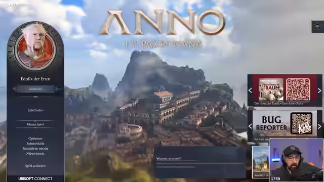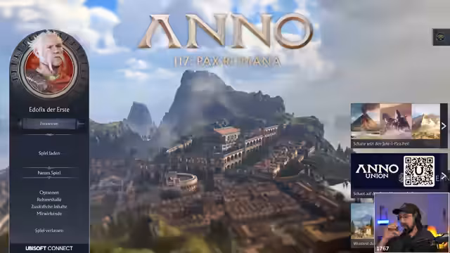 00:08:06Der Streamer startet den Livestream und bereitet sich auf das Anno 117 Event vor. Er erwähnt, dass er bereits den 33-GB-Patch heruntergeladen hat und startet Ubisoft Connect. Es wird ein 2vs2vs2-PVP-Event angekündigt, bei dem er mit Yvraldis gegen die Teams Leon/Radlauge und Ranger/Heddo antreten wird. Der Streamer ist überzeugt, dass sein Team die besten Chancen hat, und betont seine Vorbereitung. Gleichzeitig muss er ein Paket annehmen, das Hardware für eine Community-Verlosung enthält.