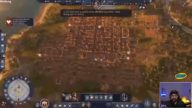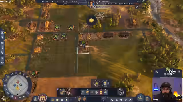 01:48:47Der Streamer äußert Begeisterung für Anno 117 und die anstehende Erweiterung, insbesondere für die Gibbon-Inseln. Er beschreibt das Spiel als entspannend und geeignet für Wochenend-Sessions. Es folgt eine detaillierte Ressourcenplanung: Die Weizenproduktion wird auf Mehrbedarf erhöht, Bretter werden gesammelt und für zukünftige Handelsrouten zu anderen Inseln geplant. Gleichzeitig wird die finanzielle Situation diskutiert, mit dem Ziel, rechtzeitig eine Villa zu errichten, um Angriffen vorzubeugen.