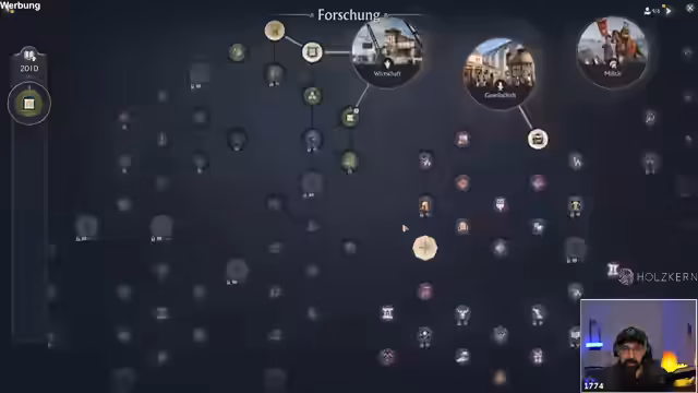 01:01:13Beginn des 2vs2vs2 PvP-Events in Anno 117. Das Team erkundet die Archipel-Karte und diskutiert Expansionsstrategien. Priorität hat der Bau von Fischerflotten und Holzproduktion. Es folgt eine Grundsatzdiskussion über Siegbedingungen: Fokus auf Bevölkerungswachstum, Wissenschaft oder Religion. Entscheidung für Wissenschaft als primären Forschungszweig.