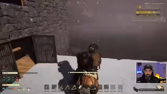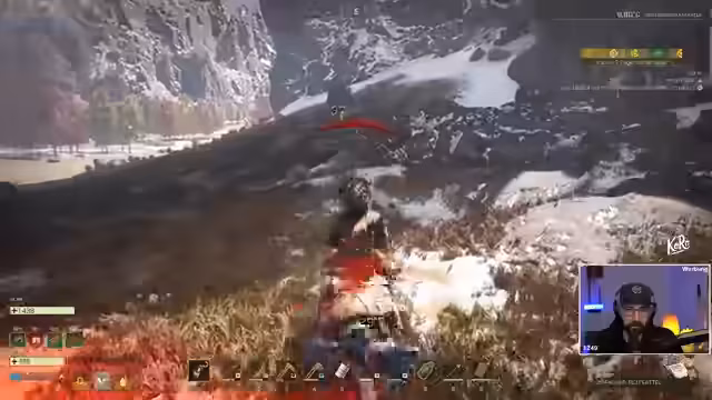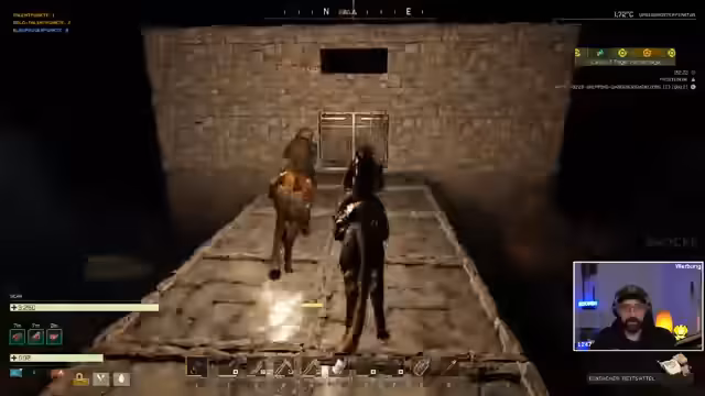 01:44:31Nachdem alle Vorbereitungen für den Bosskampf getroffen sind – Munition ist hergestellt, Buffs sind aktiv – reiten die Spieler zum Boss. Die Taktik besteht darin, die eigenen Tiere als Ablenkung einzusetzen und selbst auf den Boss zu schießen. Der Kampf wird durch das unerwartete Erscheinen feindlicher Wölfe gestört, die dem Streamer zusetzen und ihn töten. Anschließend kommt es zu einem Streit über den Verlauf des Kampfes und die Taktik, bei dem der Streamer seinem Mitspieler vorwirft, nicht ausreichend geholfen zu haben.