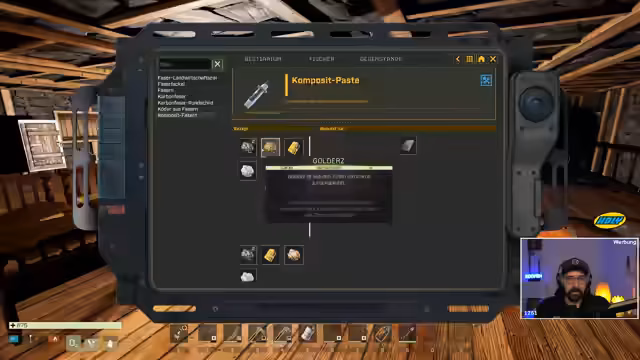 04:12:39Während der Mission muss der Streamer Leuchtraketen craften und mit einer Leuchtpistone Drohnen vernichten. Er kämpft sich durch eine Schlucht und stellt fest, dass diese Mission viel mehr Loot als erwartet bringt. Die Drohnen sind mit einem Schuss erlegbar und droppen wertvolle Ressourcen wie Stahl, Lithium und Platinen sowie Munition, was den Missionen-Ansatz als deutlich profitabler erweist.