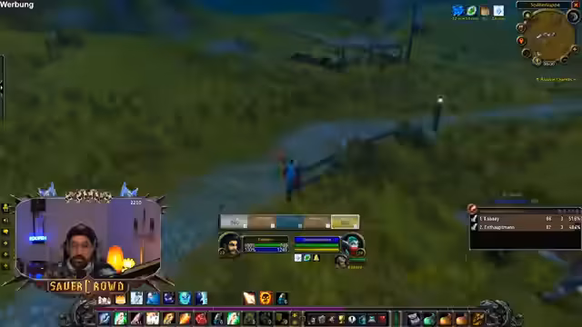 01:41:53Nach dem Erhalt beider Buffs stellt der Streamer fest, dass es einen erheblichen Level-Unterschied zwischen ihm und seinem Mitspieler gibt. Dies macht das gemeinsame Grinden schwierig, da er die Gegner als Rot für den anderen Spieler empfindet. Trotz der Buffs und der verbesserten Ausrüstung ist der XP-Grind unzufriedenstellend und fühlt sich langsam an. Er überlegt, allein in einem anderen Gebiet zu leveln, um die Lücke zu schließen, und muss gleichzeitig die Voraussetzungen für den Dungeon 'Deadmines' erledigen.