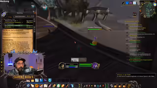 00:42:11Der Streamer ist nun im Sumpfland und konzentriert sich darauf, Quests zu erledigen, insbesondere eine Sammelquest für 15 Murlocs. Er beschreibt die Gebiete als überlaufen und unübersichtlich, was das Questen erschwert. Er testet seine Makros und Rotationen, um effizienter zu werden, und diskutiert die Notwendigkeit von Awareness im Spiel, besonders in Gruppen, um gefokuste Ziele nicht aus den Augen zu verlieren. Gleichzeitig gibt er Tipps für das Erkennen von Questgebern, die kein Ausrufezeichen anzeigen.