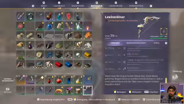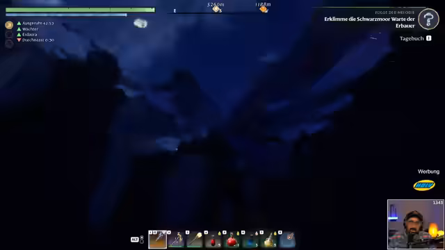 04:48:22Der Streamer kämpft sich durch ein verschlossenes Gebiet, das Tauchen erfordert, und erreicht schließlich den Vogschimmergrund. Er ist beeindruckt von der neuen Landschaft, die als Reich beschrieben wird, das aus einer heimtückischen Saat entsprang und alte Macht beherbergt. Er möchte das Innere des Landes erkunden, das als riesig beschrieben wird, und entdeckt fliegende Inseln. Er findet ein versunkenes Schiffswrack, 'Mucha's Gold', und einen epischen Bogen der Stufe 39 mit einem Sockel und dem Skill 'Kopfsucher', der bei Headshots Ausdauer wiederherstellt. Er findet auch Kochbananen, aus denen er Kochbananen-Curry herstellen kann, und kämpft sich durch ein Dungeon, wo er einen legendären Totenkopf-Streitkolben der Stufe 41 und verzierte Drakling-Dolche der Stufe 41 findet. Er überlegt, verschiedene Klassen auszuprobieren.