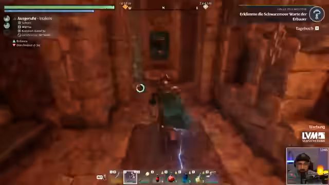04:31:02Der Streamer stößt auf ein Rätsel, bei dem er Mechanismen aktivieren muss, und scherzt über Kevins mögliche Schwierigkeiten damit. Er ist beeindruckt von der Schönheit der Welt und den Möglichkeiten, Basen zu bauen. Nach einem Kampf findet er einen Schneesturm-Zauberstab der Stufe 28 und eine Dragdal-Herrführer-Axt der Stufe 39. Er überlegt, eine Nahkampfklasse wie einen 'Battle Mage' oder einen Doppeldolch-Assassinen zu spielen, da er bisher nur Zauberer gespielt hat. Er entdeckt neue Ressourcen wie Gold und Obsidian, die wahrscheinlich mit den neuen Biomen eingeführt wurden. Er äußert seine Begeisterung für das Spiel und seine vielen Bauideen, wie eine Inselbasis in einem riesigen See.