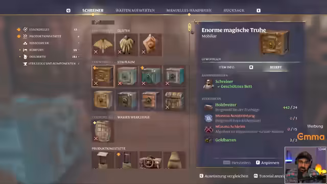 03:43:19Der Streamer plant, sich heute nur die schönen neuen Dinge anzusehen und eine größere Challenge zu einem späteren Zeitpunkt zu starten. Er spricht mit einem NPC, der eine Quest zum Mondjahresfest gibt und eine Händlerin erwähnt, die Dekorationen hatte. Es gibt viele neue Bauelemente, darunter Kryptosachen und Geheimtüren, die vielseitige Gestaltungsmöglichkeiten bieten. Der Zauberer Lazarus bietet neue Crafting-Optionen, darunter Ektoplasmafragmente und Verfallwerkzeuge. Der Streamer bedauert, dass er noch vieles nicht freigeschaltet hat. Ein weiterer NPC erzählt von der Anpassung der Menschheit an das Unheil und dem Bau von Flammenkrypten, die die letzte Hoffnung der Menschheit beherbergen. Eine neue Quest von Lazarus beinhaltet die Suche nach streunenden Katzen für Experimente, was die Möglichkeit eröffnet, Katzen und Hunde als Haustiere zu halten. Es gibt auch Katzenfutterköder. Eine andere Quest dreht sich um die Suche nach Weisheit außerhalb der Grenzen und die Silhouette eines brennenden Turms. Eine weitere Theorie der Bauer befasst sich mit Juwelen zur Selbstveredelung und der Nutzung natürlicher Energiequellen wie Lava und Feuer. Der Streamer vermutet, dass dies mit der Stromerzeugung durch Wasser zusammenhängt. Es gibt neue Tränke, Zaubersprüche und eine Schleim-Färbestation. Ein neues Rüstungsset auf Level 33 und Feuerwerksraketen können hergestellt werden. Der Streamer ist begeistert von den Updates und wünscht sich einen neuen Run auf schwerster Stufe, um alle Features zu erleben und eine Siedlung zu bauen. Er möchte auch andere Klassen als den Magier ausprobieren, wie Bogenschütze oder Nahkämpfer. Die Köchin bietet Essen mit verschiedenen Boni wie Gesundheits- und Ausdauerregeneration sowie Frostbeständigkeit. Es gibt Köder für verschiedene Tiere und Tierkissen, was die Tierhaltung erweitert. Die Jägerin gibt eine Quest zum Sammeln von Insekten in den Hochweiden und bietet die Möglichkeit, eine Angel zu bauen, wofür jedoch Eisbach benötigt wird, dessen Herkunft unklar ist. Der Streamer entdeckt eine Auto-Einsortierungsfunktion für Kisten und die Möglichkeit, Schilder zu beschriften. Er benötigt einen neuen Rucksack, da der alte ersetzt werden muss und er mehr Platz benötigt, um ins neue Wasserbiom zu gehen.