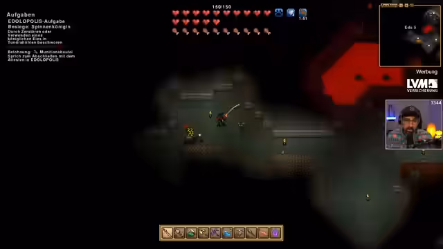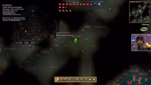 02:33:10Der Streamer beginnt den Kampf gegen die Spinnenkönigin in der Tundra-Höhle. Seine NPCs mit Dämonenrüstung halten dem Schaden stand, während die weniger gut ausgerüsteten NPCs schnell sterben. Er verliert drei NPCs und muss die verbleibenden neu einkleiden und organisieren. Der Boss droppt verschiedene Gegenstände, darunter ein königliches Ei, das seine maximale Gesundheit erhöht, und ein legendäres Schwert. Trotz der Verluste ist der Streamer mit dem Ergebnis zufrieden.