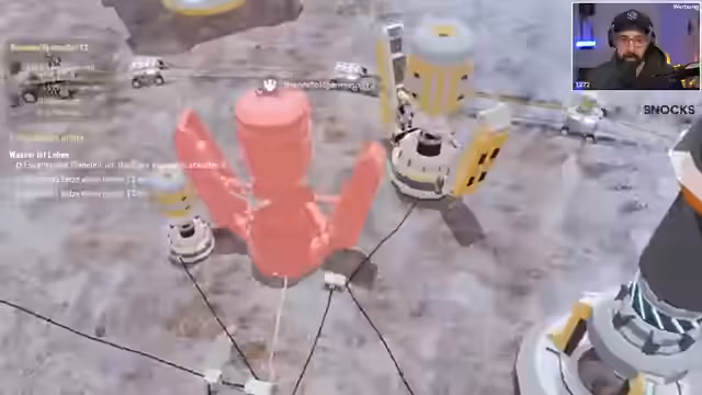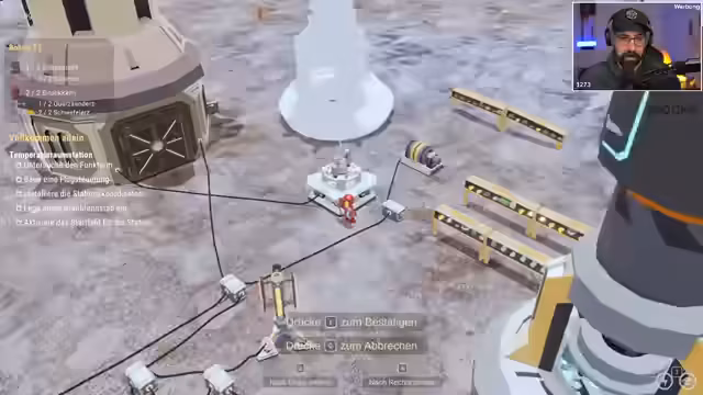02:37:26Die ambitionierten Baupläne werden durch eine kritische Stromknappheit gehemmt. Der Streamer stellt fest, dass die vorhandenen Generatoren nicht ausreichen, um die energiehungrigen neuen Komponenten zu betreiben. Es wird entschieden, zunächst dringend mehr Strom zu produzieren. Dies führt zur Erkenntnis, dass mehr Brennstoffkerne benötigt werden, und der Streamer startet eine Sammelaktion für Regolith, um neue Brennstäbe herstellen zu können und die Energieversorgung sicherzustellen.