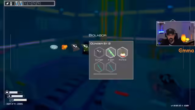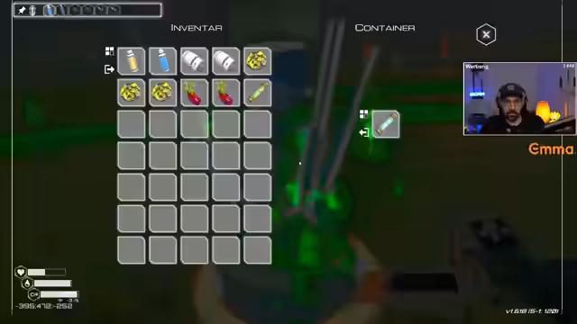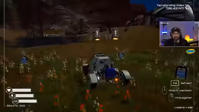 01:08:12Der Stream kehrt zu Planet Crafter zurück. Der Streamer erinnert sich an den Plan: Die Basis soll erweitert und ein Fahrzeug beladen werden, um in giftige Gebiete vorzudringen und dort Uran zu farmen. Mit dem Uran sollen Stromgeneratoren und Algenfarmen betrieben werden, um die Sauerstoffproduktion zu steigern. Die Base und das Fahrzeug werden für die Expedition vorbereitet.