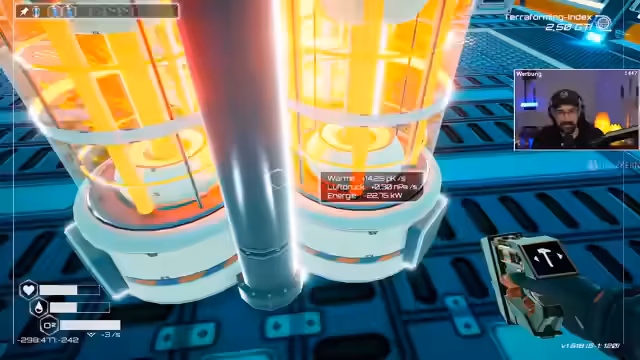 01:43:39Um den Fortschritt voranzutreiben, entscheidet sich der Streamer, Raketen abzuschießen. Er startet Uran-Raketen, die nicht nur neue Ressourcen wie Iridium herabregnen lassen, sondern auch die Produktion von Wärme und anderen Substanzen in der Atmosphäre skalieren. Dies beschleunigt den gesamten Terraforming-Prozess erheblich und ermöglicht den Bau fortschrittlicher Technologie wie dem Kernfusionsreaktor.