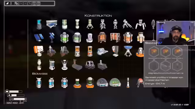 02:58:37Der Streamer äußert sich begeistert über den baldigen Autohersteller, der benötigte Zutaten automatisch herstellt und somit das Spiel massiv vereinfachen wird. Parallel dazu wird der Bau eines Kernfusionsgenerators für ausreichend Strom gesichert, während die Sauerstoffproduktion mit 9,75 pro Sekunde noch ein kritischer Faktor ist. Die Terraformungsfortschritte schreiten voran, wobei Grassamen und Biomasse als primäre Ressourcen im Vordergrund stehen.