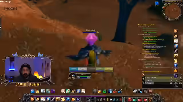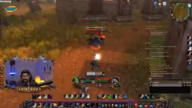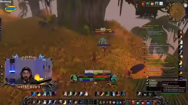 05:39:02Der Streamer definiert die Strategie für das Duo-Gameplay: Kevin tankt als Warrior und macht Schaden, während er heilt, um Mana- und Pull-Probleme zu vermeiden. Sie kämpfen gegen mehrere Mobs, darunter einen Boss-Kampf, bei dem gut geheilt wird. Es gibt Diskussionen über AOE-Schaden und Wut-Management. Anschließend wechseln sie zu einer Quest, bei der sie Raptoren farmen, und kritisieren, dass ihre AOE-Attacken oft verfehlen.
