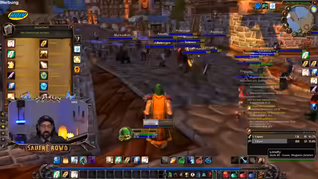 09:02:04Der Streamer bespricht die Teamzusammenstellung für den Dungeon, wobei Urkundensohn als Rogue und Saberster als erfahrener Spieler erwähnt werden. Bei Level 43-44 ist er begeistert von den Dungeon-Quests, die viel XP bringen – er erhält 4.000 XP und 2 Gold, erreicht damit 40% auf Level 44. Er loggt sich im Wirtshaus aus, plant Quests abzugeben und betont, wie wichtig diese für den Levelaufstieg sind, während er mit dem Chat über strategische Entscheidungen diskutiert.
