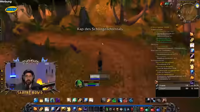 03:00:17Der Streamer ist nun mit einer dualen Spezialisierung ausgestattet – eine für Schadensausteilung (Shadow) und eine reine Heiler-Spezialisierung. Für Instanzen plant er, komplett auf Schadenszauber zu verzichten und sich nur auf Heilung und Buffs zu konzentrieren, um Mana zu sparen. Gemeinsam mit seinem Partner startet er das Questen in Schlingendorntal. Sie wählen zunächst weniger gefährliche Quests (wie 'Cortello's Rätsel') und überlegen, den späteren schwierigeren Quest-Verlauf (z.B. 'Hauer der Skullsplitter') in Angriff zu nehmen, sobald sie eine Stufe aufgestiegen sind.