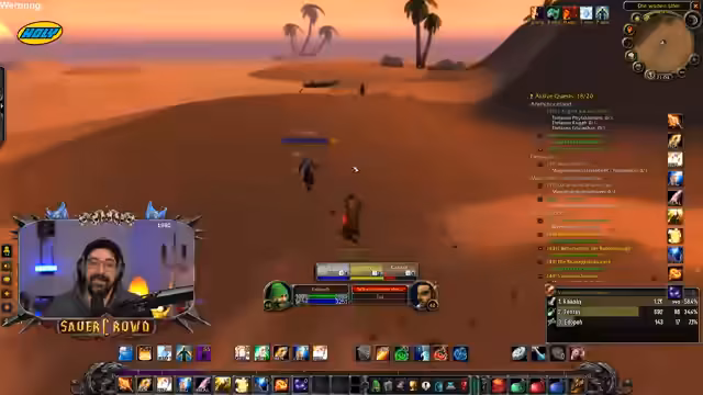 05:35:53Der Streamer freut sich auf Tanaris und beginnt mit einer schwierigen Kill-Quest, bei der er gegen viele ranged Gegner kämpft und Probleme mit Pulls hat. Das Team versucht, die Situation zu managen, während er seine Ultimative-Abklingzeit und Mana-Probleme erwähnt. In der Zwischenzeit spricht er über die Resignation ab Level 50 und das Gefühl, dass ab Level 40 der Fortschritt schleppend wird. Aktuell plant er, die nächsten zwei Stunden mit Buffs zu grinden und die Quests parallel zu bearbeiten.