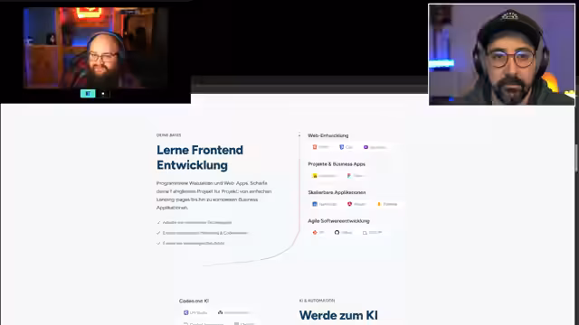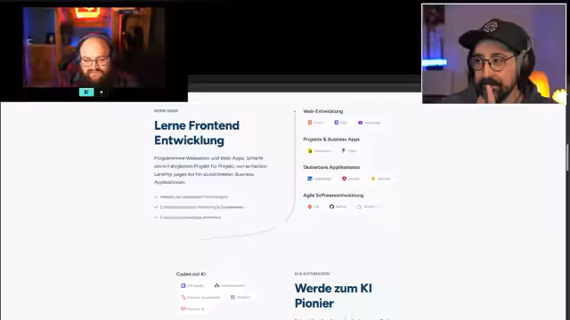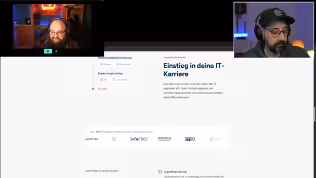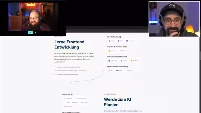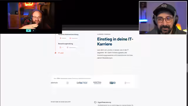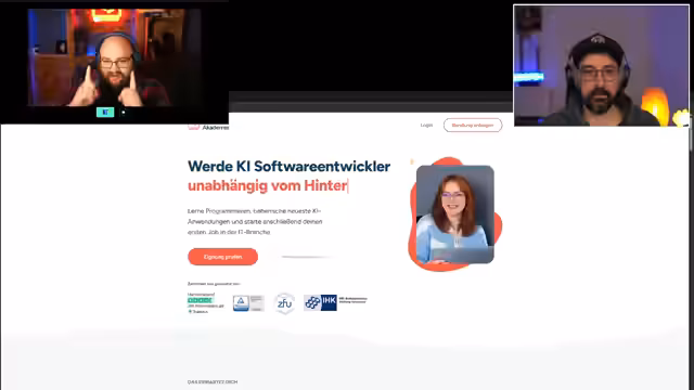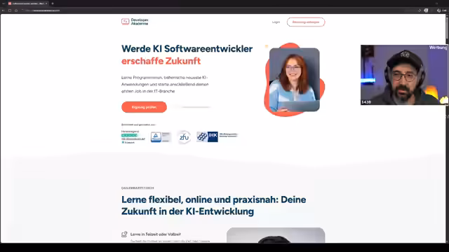 03:03:04Die DEV Academy bietet eine berufsbegleitende Ausbildung, bei der die Teilnehmenden in Eigenverantwortung lernen und jederzeit einen zugewiesenen Coach über Discord erreichen können. Die festgelegten Gruppenarbeiten werden so geplant, dass sie sich in die Lebenssituation der Teilnehmenden einfügen, wobei die Finanzierungsmöglichkeiten sehr vielfältig sind, über Arbeitgeber, selbst oder das Arbeitsamt. Der Service ist auf flexibler Unterstützung und persönliche Betreuung ausgelegt.