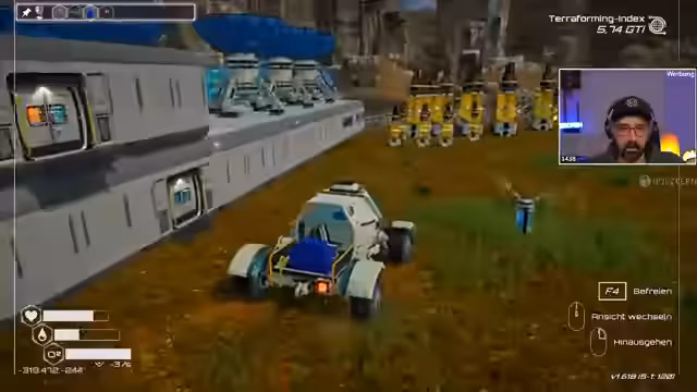 03:22:30Nach dem Interview kehrte der Streamer zu dem Spiel Planet Crafter zurück. Das Ziel ist es, den Planeten lebensfreundlicher zu machen. Zuerst konzentrierte er sich darauf, den Luftdruck durch das Bauen und Abschießen von Raketen massiv zu erhöhen, um neue Baupläne wie den Erzextraktor 3 freizuschalten. Dabei wurden auch die ersten Lebensformen entdeckt.