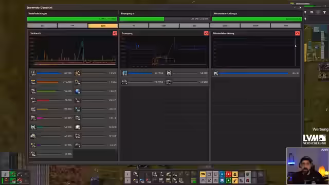 03:31:35Es wird eine Diskussion über das Design der Mall geführt, wobei verschiedene Ansichten zu Ästhetik und Platzeffizienz ausgetauscht werden. Ein Design von Keklark wird als "oberhässlich" bezeichnet, da es zu viele Strommasten enthält. Letztendlich wird ein Mischdesign für die Malls beschlossen, da keine Einigung über ein fixes Layout erzielt werden kann. Parallel dazu wird die Energieversorgung durch Turbinen überprüft, die 10 Megawatt pro Turbine liefern. Die Effizienz der Energieproduktion wird diskutiert, und es wird festgestellt, dass die aktuelle Leistung ausreicht, um gut durch die Nacht zu kommen. Es gibt auch Überlegungen zur optimalen Platznutzung und zur Versetzung von Kisten, um Engpässe zu vermeiden.