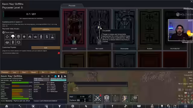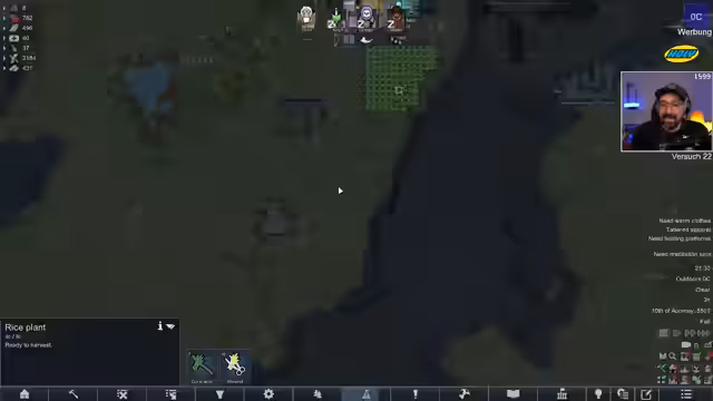 06:19:17Nach Ende der Factorio-Session wird der Stream nahtlos zu RimWorld übergelebt. Der Streamer stellt den Spielern die aktuelle Situation vor: eine vierköpfige Gruppe ist auf dem Weg zu einem Frozen Terraformer, wird jedoch von einem Mech-Cluster angegriffen. Es gibt einen bewusstlosen Charakter und die Probleme mit den Krähen, die die Woi-Köpfe fressen. Der Fokus liegt nun darauf, den Raid zu überstehen und die Reise zum Terraformer fortzusetzen, um die Geschichte von RimWorld Void weiter zu erzählen.