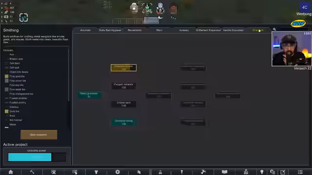 05:19:45Es wird entschieden, die Rüstung schnellstmöglich zu bauen und gleichzeitig zu expandieren, um Ressourcen zu sammeln und die Produktion zu steigern. Der Streamer stellt klar, dass das ständige Wachsen und Expandieren sein Spielstil ist, der aber zwingend notwendig ist, um in der Deathworld zu überleben. Es werden kritische Technologien wie Hochbahn und Triebwerke für den Raketenbau erwähnt, die zeitnah erforscht werden sollten. Der Fokus liegt darauf, die Ressourcenbasis schnell auszubauen, um den Raumschiffsbau voranzutreiben.