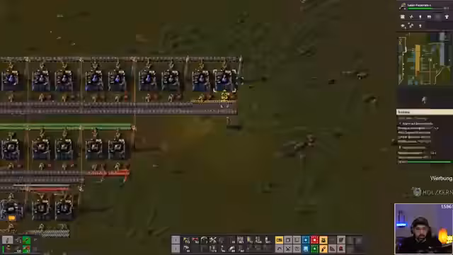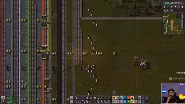 02:02:40Der Platz in der Fabrik wird zunehmend eng, insbesondere im oberen Bereich, was die Integration weiterer Science-Pakete erschwert. Die aktuelle Mall muss abgerissen werden, um Platz für die Science-Produktion zu schaffen. Es wird diskutiert, ob das gesamte WLAN-Netzwerk ausgebaut werden muss oder ob es ausreicht, den Bus mit WLAN zu versorgen und die darauf befindlichen Materialien in Pufferkisten zu laden. Die Relevanz des Busses wird betont, da er alle wichtigen Materialien transportiert. Die Produktion von Gleisen, Lichtbögenöfen und roten Modulen für das nächste Science-Paket wird geplant. Es wird festgestellt, dass die nächsten Science-Pakete einfacher herzustellen sind, was die Hoffnung weckt, bald sieben Science-Pakete gleichzeitig produzieren zu können. Ein Kampf zwischen einem Roboter und einem Alien, der viele Reparatur-Kits kostet, wird beobachtet, und es wird beschlossen, die Wand abzureißen, um das Problem zu lösen. Der Plan ist, alle sieben Science-Pakete bis 20 Uhr zu automatisieren, um dann mit RimWorld fortzufahren.