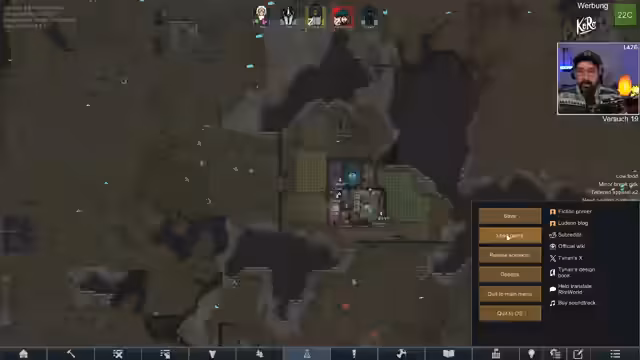 01:23:13Zu Beginn des Streamings steht die Beschaffung von Ressourcen wie Holz und Weizen im Fokus, um die Siedlung zu erweitern und die Bewohner für bevorstehende Raids auszurüsten. Gleichzeitig wird die Absicht geäußert, mehr Wohnquartiere zu bauen, um die Bevölkerung zu vergrößern. Auch die Sorge um den drohenden Verlust der Siedlung bei einem Todesfall im Permadeath-Modus wird angesprochen, was den Druck erhöht.