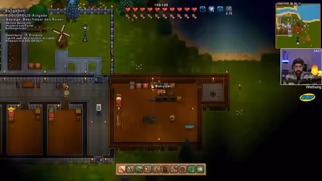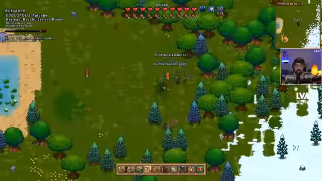 02:47:11In Necesse wird die Kolonie systematisch ausgebaut. Es werden Werkbänke konfiguriert und Rezepte wie Fischbratlinge hinzugefügt. Siedler werden mit spezifischen Aufgaben betraut, darunter Fischfang, Honigproduktion, Tierpflege, Bewirtschaftung von Feldern und Baumfällarbeiten. Nachdem der erste Boss, der Beschützer des Bösen, mehrmals besiegt wurde, wird die Werkbank und der Amboss mit Dämonenmaterial aufgewertet. Die Basis wächst von vier auf acht Zimmer an und ein effizientes Aufgabensystem für die Bewohner etabliert.