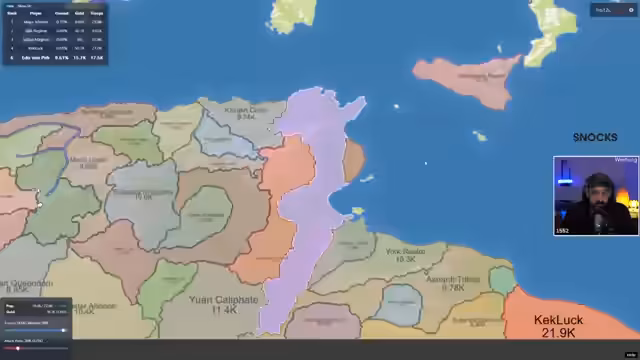 05:36:47Es werden Truppen geschickt, um zu helfen, und es wird über die Attack-Ratio gesprochen. Es wird vermutet, dass das Spiel gewonnen wurde, da die ganze Welt dem Team gehört. Ein Spieler nimmt Santa Claus ein und bittet um weitere Truppen. Es wird überlegt, Battleships zu bauen. Es wird diskutiert, ob man jemanden angreifen kann, der verraten wurde, ohne Probleme zu bekommen. Ein Spieler wird von Thun angegriffen. Es wird überlegt, einen Defense-Post zu errichten. Ein Spieler wurde genuket. Ein Spieler hat zu viele Truppen und bittet darum, dass ihm gesagt wird, wann er mehr schicken soll. Alaska wird gefressen, und eine Atombombe wird eingesetzt. Kanada wird angegriffen. Keklag kommt wieder zurück. Soon wird gepusht. Keklag hatte viele Kriegsschiffe. Soon wird geschluckt. Es wird festgestellt, dass es schwierig ist, zwei gegen drei zu gewinnen. Es wird beschlossen, so lange neu zu starten, bis die richtige Kombination erreicht ist. Ein Lobby-Code wird geteilt. Ein Spieler hatte Runden, in denen er am Anfang nichts machen musste und glaubte, er sei deshalb gut.