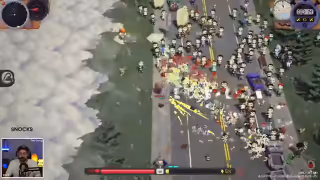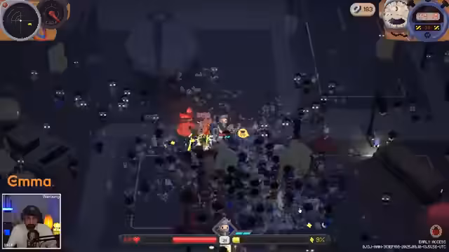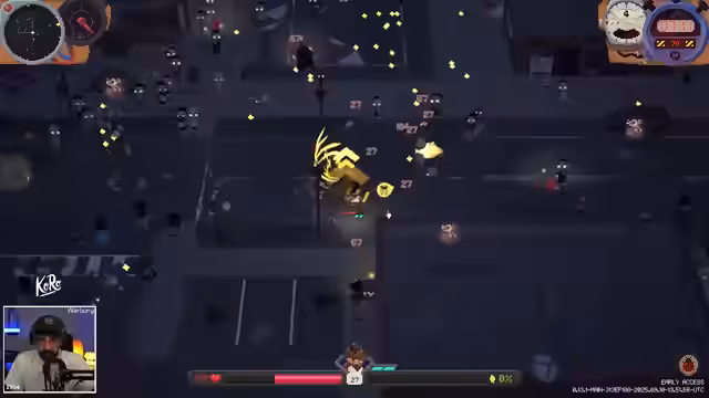 04:08:53Der Streamer erkundet verschiedene Waffen-Upgrades und beschäftigt sich mit der Wahl der richtigen Ausrüstung. Er findet einen Rocket Launcher und entscheidet sich, diesen zu nutzen, während er auch über alternative Waffen wie einen Staubsauger nachdenkt. Die Wahl der Waffen richtet sich nach ihrer Effektivität im Kampf, wobei er besonders auf Crit Chance und Trigger-Effekte achtet. Er experimentiert mit verschiedenen Kombinationen und Upgrades, um seine Leistung im Spiel zu optimieren.