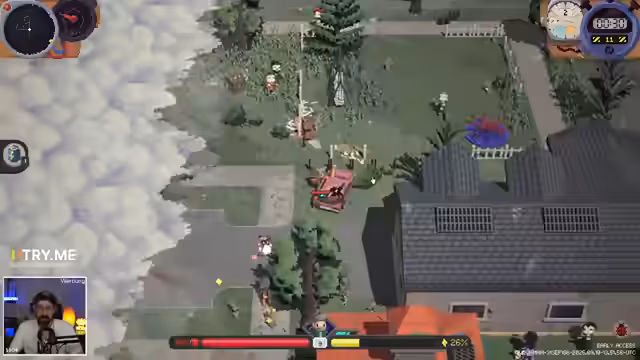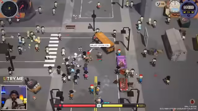 04:22:37Der Streamer beschließt, sofort einen Rocket Launcher zusammenzubauen, anstatt strategisch zurückzugehen. Er nutzt einen Staubsauger, viel Zeug und ist nun massiv gefährlich dabei. Obwohl es 'smart' wäre, den Rocket Launcher schnell zu bauen, entscheidet er sich, dies nicht zu tun. Stattdessen bereitet er sich auf einen weiteren Run vor, um mehr Sachen freizuschalten und seine Performance zu verbessern.