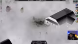 01:01:03Ein bedrohlicher Raid mit Mechs kündigt sich an. Es wird beobachtet, dass die feindlichen Türme ungewöhnlich in einer Reihe platziert sind, was ein Novum für den Streamer nach 4000 RimWorld-Stunden darstellt. Der Kampf gegen die Mechs gestaltet sich schwierig, da der Streamer viele seiner Kämpfer verliert. Ein Lösungsansatz wird entwickelt: Bella Luzi und Matt sollen mit einem Smoke Launcher die feindlichen Türme ausschalten, um den Zugang zum Loot zu ermöglichen und die Kolonie zu retten.