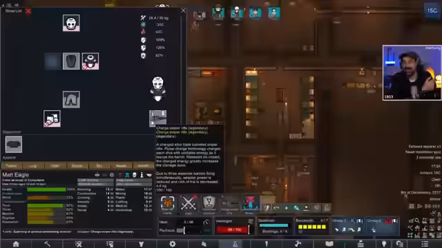 00:22:39Es erfolgt ein kurzer Recap des aktuellen RimWorld-Runs, der bereits seit 63,5 Stunden läuft und in dem schon 34 Kolonisten gestorben sind. Der Koloniewert ist hoch, aber der Streamer versucht, ihn durch Einschmelzen unnötiger Gegenstände gering zu halten und im Untergrund zu bleiben, um nicht vom Imperium entdeckt zu werden. Die Schwierigkeit des Runs besteht darin, dass hauptsächlich gegen imperiale Truppen, Insekten, Mech-Raids und Kultisten gekämpft wird. Mech-Breach-Raids werden als die einfachsten angesehen, da sie gekitet werden können. Die Verteidigung der Kolonie wird als okay bezeichnet, und es wird erwähnt, dass Matt den Todesschlaf hält. Die Kolonistin Turi ist erwachsen geworden und hat gute Fähigkeiten, während Julchen eine legendäre Charge Sniper Rifle hergestellt hat. Ziel ist es, bessere Rüstung, Waffen und mehr Leute zu bekommen. Die Kolonie besteht derzeit aus sieben Personen, bald acht, und es wird gehofft, dass die Kinder gute Fähigkeiten entwickeln. Es wird erwähnt, dass Plastahl benötigt wird und ein Deep Drill außerhalb der Basis angeschlossen werden muss.