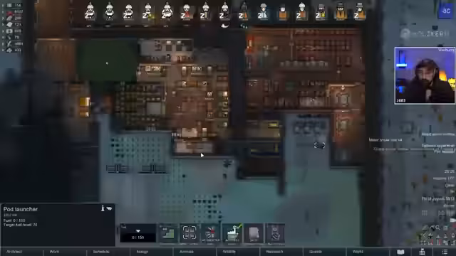 02:12:18Für den finalen Raumschiffbau werden gute Mahlzeiten benötigt, um die Laune der Kolonisten zu erhalten. Der Streamer betont die Wichtigkeit von Rüstung und Waffen, bevor mit dem Schiffbau begonnen wird. Gleichzeitig muss das Risiko von Drop-Raids berücksichtigt werden, die den Run gefährden könnten, wenn nicht ausreichend Verteidigung bereitsteht.