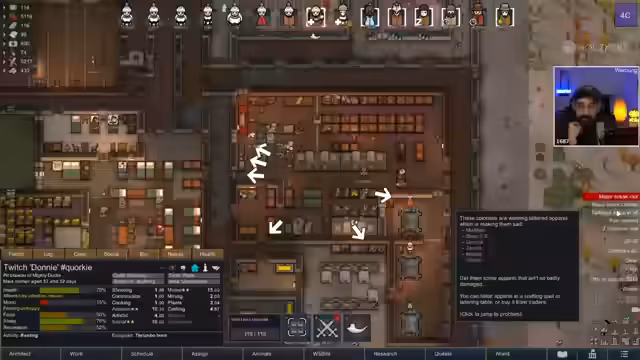 02:47:40Es wird über die Anzahl der Kolonisten gesprochen, die für effizientes Spiel notwendig sind. Mit 15 Kolonisten ist alles noch fein, aber bei 50 Kolonisten kann es im Late Game laggy werden. Der Streamer bereitet sich auf das Finale vor, indem er einen Vorrat von guten Mahlzeiten kocht. Die Rüstungsproduktion wird fortgesetzt und alle Hauptfighter werden ausgestattet.