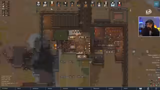 05:20:00Die Kolonie befindet sich im Endgame des Run, bei dem das Raumschiff zur Flucht vorgebaut wird. Der Streamer hat den Run von Matthias übernommen und arbeitet daran, die Kolonie mit eingeschränkten Ressourcen zu retten. Wichtige Charaktere wie Chad, Adam und der Men in Black sind überlebt worden, während die Gesamtstimmung der Kolonisten aufgrund von Kämpfen und Verlusten leidet. Die Ressourcen sind knapp, besonders bei Plastall und Nahrung, während gleichzeitig gefährliche Raids drohen.