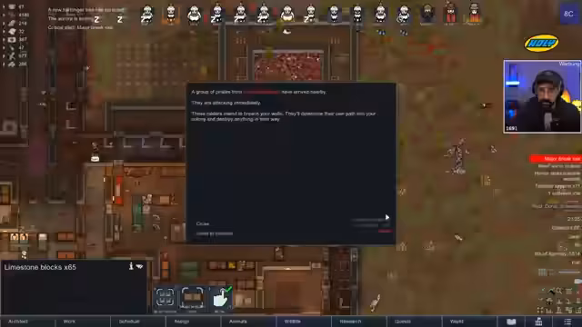 06:21:05Der Reaktor wird gestartet, was das Finale des Spiels einleitet. Alle Kolonisten werden in eine sichere Zone gebracht, um sie vor den bevorstehenden Angriffen zu schützen. Die Verteidigung wird verstärkt, und es werden Drogen wie MindNap Serum und Gojuice an die Kämpfer verteilt, um ihre Kampffähigkeiten zu verbessern. Ein Piratenangriff startet, und die Kolonie wird mit Mörsern beschossen. Der Koloniewert steigt rapide an, was die Situation zusätzlich erschwert. Es wird versucht, die Angreifer durch die Fallen zu locken und gleichzeitig die Basis zu verteidigen. Ein Breach-Raid von oben und ein Belagerungsraid von unten machen die Situation besonders herausfordernd. Es wird betont, dass der Start des Raumschiffs trotz der schwierigen Umstände versucht wird, aber es ist unsicher, ob die 15 Tage bis zum Start überlebt werden können. Rocket Beans raidet den Stream, und die Zuschauer werden über die aktuelle Situation informiert: Das RimWorld-Finale, in dem versucht wird, den Run von Bonjwa Matteo zu retten.