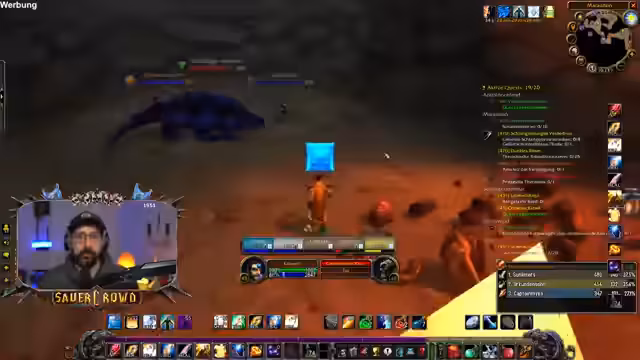01:50:59Ein anderer Spieler, Mario Pavango, kontaktiert den Streamer und bittet um Hilfe bei der Tötung eines bestimmten Bosses in Tanaris, Kalif Skorbit Stich. Der Streamer willigt spontan ein, kann aber zunächst den Boss nicht finden. Nachdem Mario die Quest mit dem Streamer teilt, finden sie den Boss und töten ihn gemeinsam. Der Streamer zeigt sich begeistert von der spontanen Zusammenarbeit und der Effizienz, die ein kleines Team beim Bösenerledigen bietet. Er erwähnt, dass er solche namenlosen Bosse gerne als Highlight im Spiel empfindet und dass solche Momente das Gemeinschaftsgefühl im Spiel stärken.