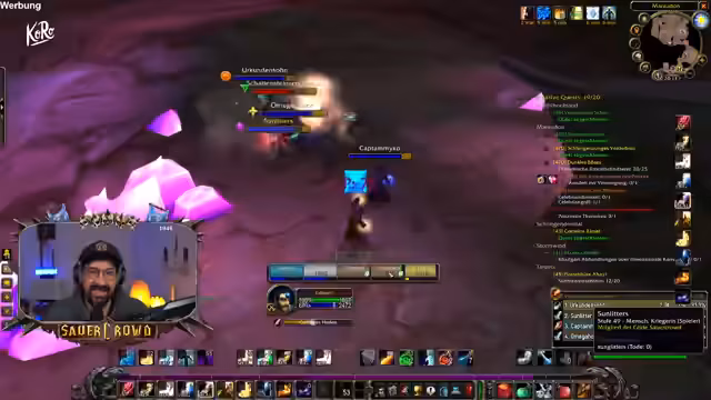 09:52:39Es gibt eine Diskussion innerhalb der Gilde über ein eventuelles Projektende, da einige Mitglieder über das Aufhören nachdenken, da sie nach dem Erreichen von Level 45 einen anderen Spielstil bevorzugen. Währenddessen wird der Tod eines Gilde-Mitglieds namens Chris thematisiert, der in ein Hordelager geraten ist. Der Streamer zeigt Mitgefühl und äußert Bedauern, da er ihm hätte helfen können, doch der Chat berichtet, dass der Tod durch AFK-Stehen bei einer Quest verursacht wurde.