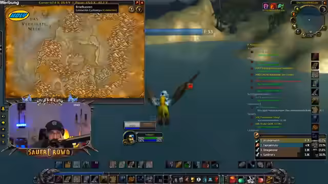 02:10:14Nach dem Erfolg mit dem Boss Kalif Skorbit Stich, widmet sich der Streamer wieder seinem regulären Grinden. Er erwähnt eine frustrierende Erfahrung mit einer Quest, bei der er mehr Geld ausgegeben hat, als er als Belohnung erhalten hat, was ihn aber gleichzeitig amüsiert. Kurz darauf meldet sich der Chat über das Spawnen eines anderen Bosses namens Feuerbart. Der Streamer und sein Team machen sich sofort auf den Weg, um ihn zu jagen. Sie finden ihn an einem seiner Spawnpunkte und besiegen ihn zügig. Nach dem Kampf prüfen sie ihre Questlog-Fortschritte und planen, weitere Aufträge in der Piratenregion Tanaris zu erledigen.