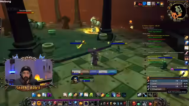 04:24:44Die Gruppe kämpft sich weiter durch Maraudon und stellt fest, dass der Dungeon ihre Ressourcen, insbesondere das Mana des Heilers, stark beansprucht. Ein Spieler stirbt, was den Streamer veranlasst, die Kommunikation zu verschärfen und auf die Anzeichen für Heilbedarf zu achten. Es wird klar, dass die Bosskämpfe eine strategische Vorbereitung erfordern, wie das Buffen vor dem Kampf gegen die 'Prinzessin Teradras'. Der Streamer führt die Gruppe sicher durch die Instanz, während der Chat die Leistung lobt.