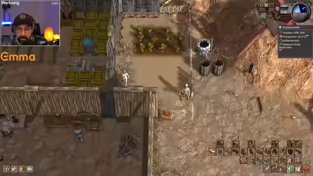 02:34:24Nach der technischen Pause beginnt ein neuer Versuch, die Apokalypse zu überstehen. Der Streamer erkennt kritische Fehler in seiner bisherigen Strategie, insbesondere beim Lagermanagement und der Kompostproduktion. Lagerplätze sind knapp, was die Produktion blockiert, und die Charaktere sind manchmal untätig. Die Priorität wird nun auf die Schaffung von effizienteren Strukturen gelegt. Die Herausforderung, bei Nacht und Kälte zu überleben, erfordert nun eine kluge Raumaufteilung mit Kühlung und ausreichend Lagerplätzen, anstatt eines großen, unorganisierten Lagers.
