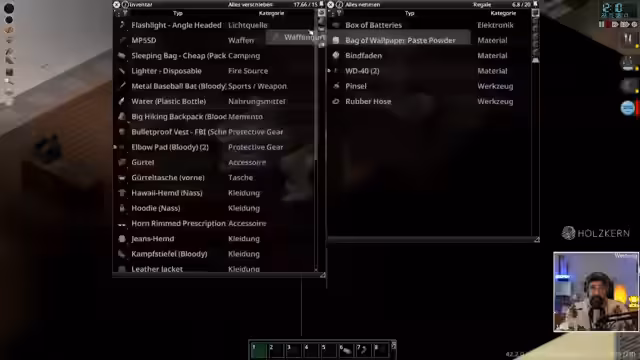 01:54:55Es werden Batterien für die Loot-Suche besorgt, wobei insgesamt etwa 60 Batterien erwartet werden. Es wird über die Haltbarkeit von Benzin diskutiert und festgestellt, dass es nicht unendlich haltbar ist, was im Kontext eines 'One-Year-Loster' relevant wäre. Der aktuelle Laden wird als 'mega geil' beschrieben, mit nützlichen Gegenständen wie einem Blank Key, Magazinen und Werkzeugen. Es besteht Interesse am Erlernen des Schmiedens und es werden verschiedene Werkzeuge und Materialien wie Saatgut, Metallplatten und Klebeband gefunden. Ein Two-Point-Rifle-Slink wird entdeckt, um das Gewicht von Waffen zu reduzieren. Der Laden wird als langfristig nützlich eingestuft, trotz akutem Hunger. Ein Crucible wird gefunden, was als seltenes Item gilt. Es wird überlegt, was mit WD-40 gemacht werden kann. Der Laden wird als Hammer bezeichnet, da es viel gutes Zeug gibt, das langfristig genutzt werden kann.